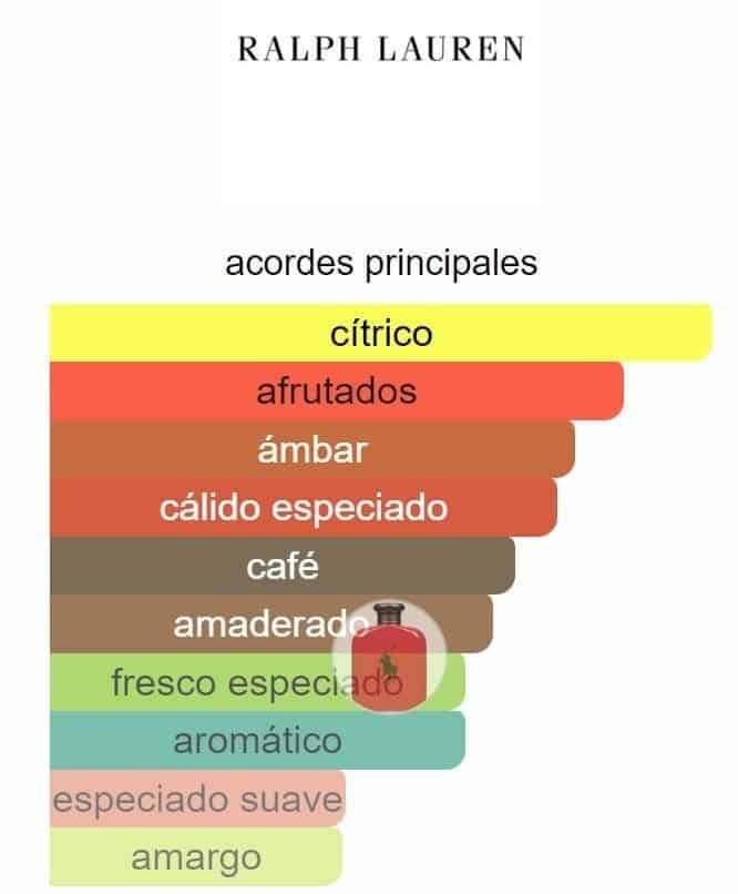 Polo Red de Ralph Lauren es una fragancia de la familia olfativa Amaderada Especiada para Hombres. Polo Red se lanzó en 2013. La Nariz detrás de esta fragrancia es Olivier Gillotin. Las Notas de Salida son arándano, toronja (pomelo) y limón italiano (lima italiana); las Notas de Corazón son azafrán y salvia; las Notas de Fondo son ámbar, café y notas amaderadas.